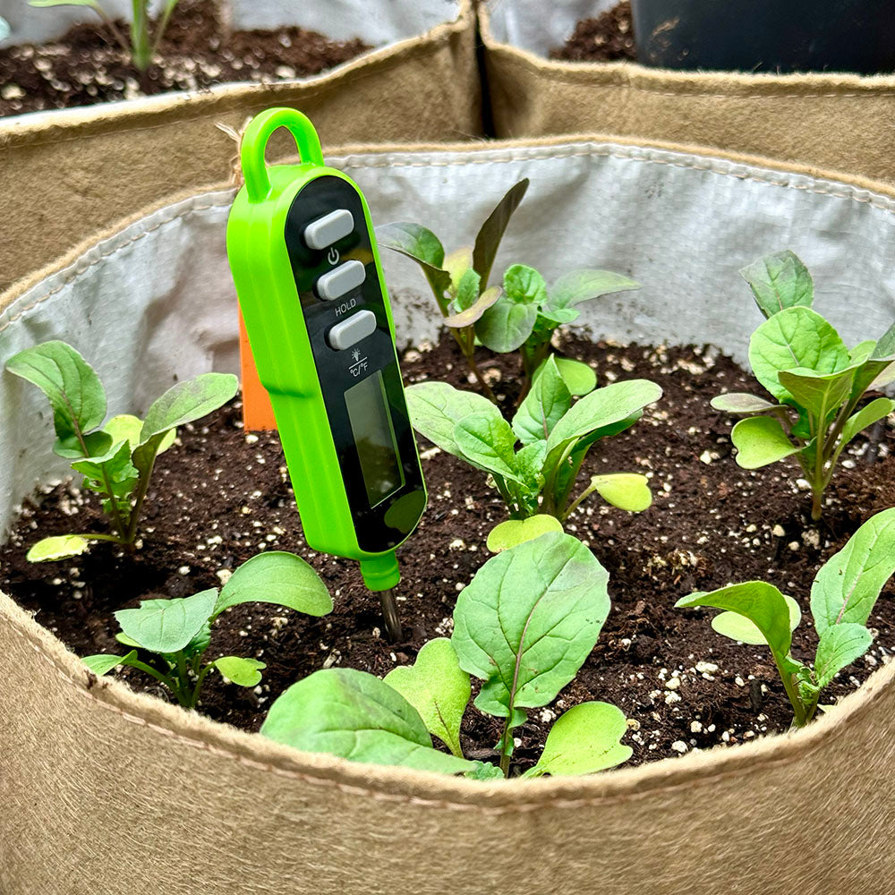 Root-friendly, stainless steel probe encased in a rugged, IPX6 waterproof shell. This indispensable tool was designed for gardeners who understand that temperature plays a crucial role in the success of their plants.
